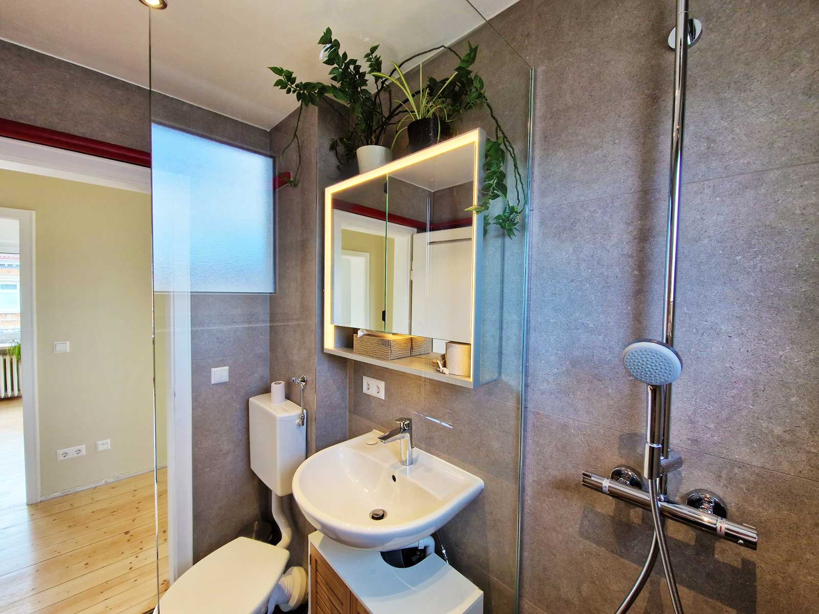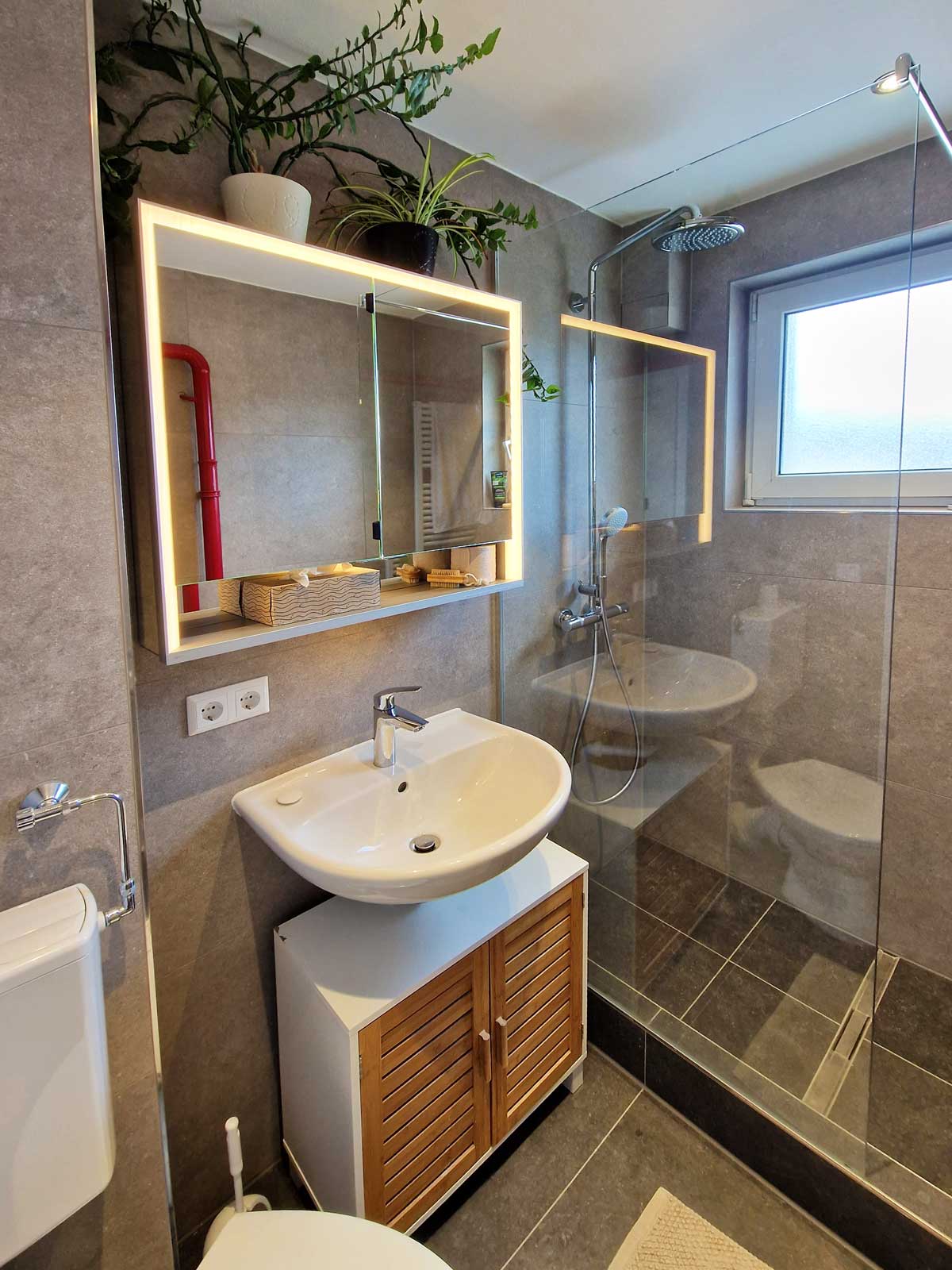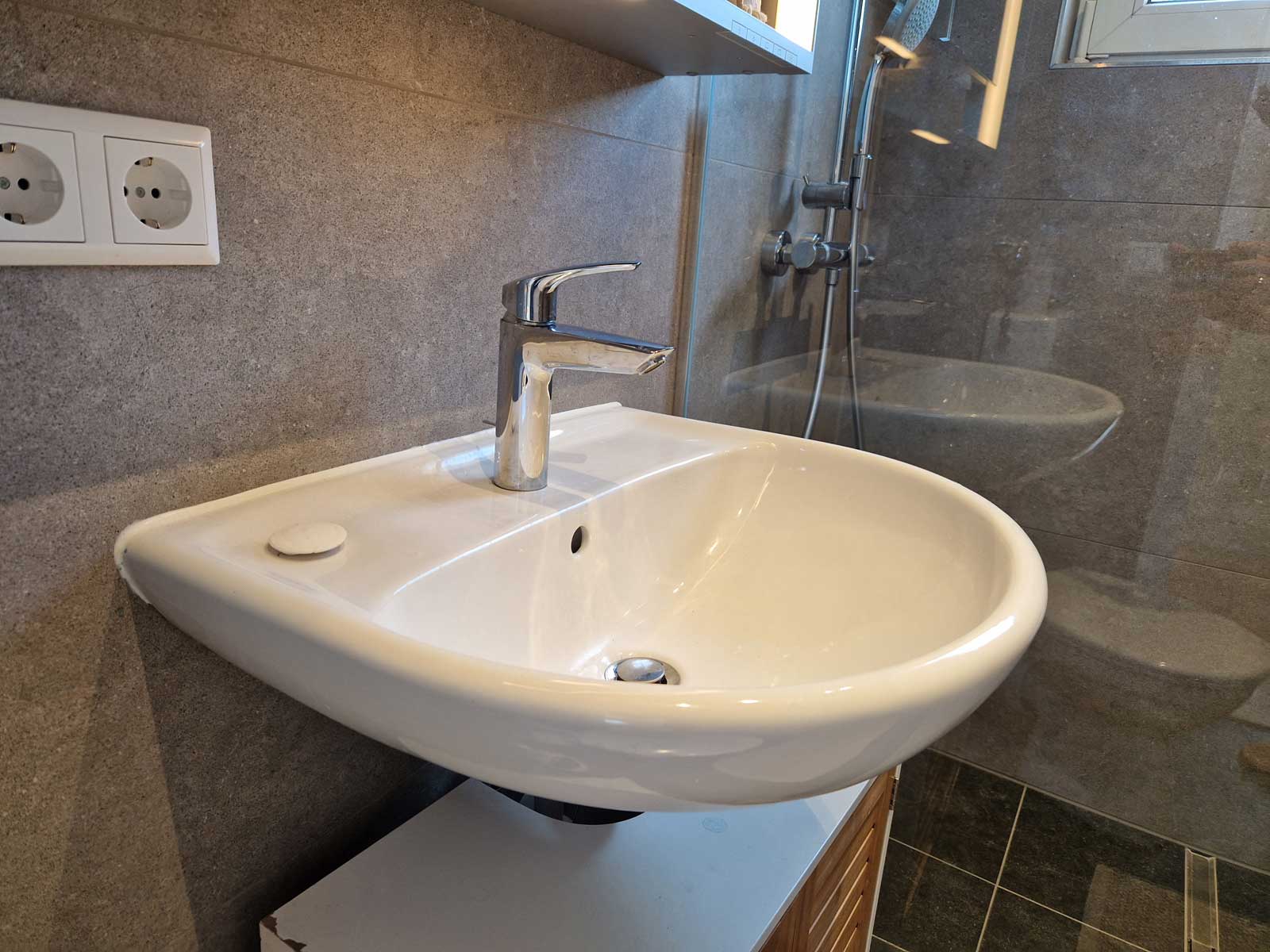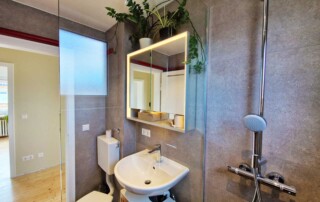 Das alte Badezimmer mit Badewanne passte nicht in das Konzept und wurde daher komplett überarbeitet.